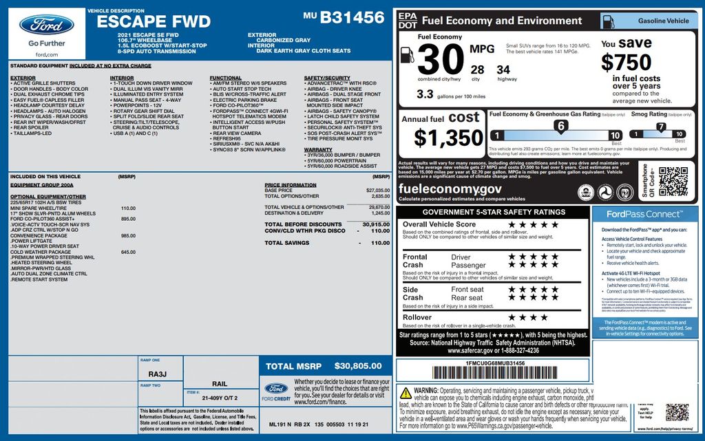 2021 Ford Escape SE features a 1.5L EcoBoost Engine!