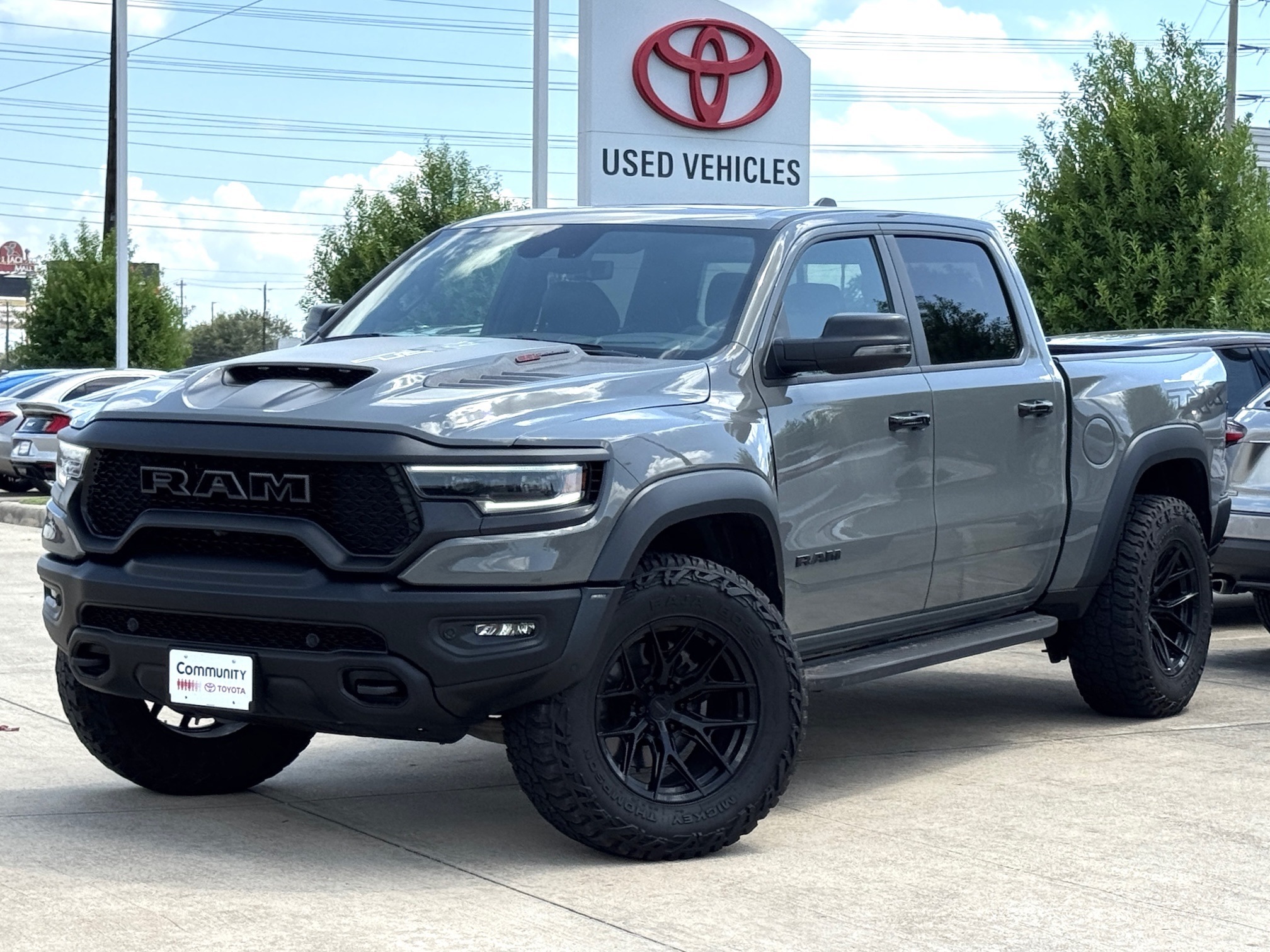 Gray 2023 Ram 1500 TRX 4WD 8-Speed Automatic 6.2L Supercharged HEMI V8 SRT Lunar Package, Vossen Wheels, Mickey Thompson Tires, #2 Seat Foam Cushion, 2-Door Passive Entry, Front Door Locks, 4 Way Front Headrests, Accent Color Door Handles, Blind Spot & Cross Path Detection, Bucket Seats, Center Console Parts Module, Digital Rearview Mirror, Driver Seat Memory, Driver/Passenger Wrapped Assist Handles, Exterior Mirrors w/Memory, Front Door Accent Lighting, Front Seat Back Map Pockets, Full Length