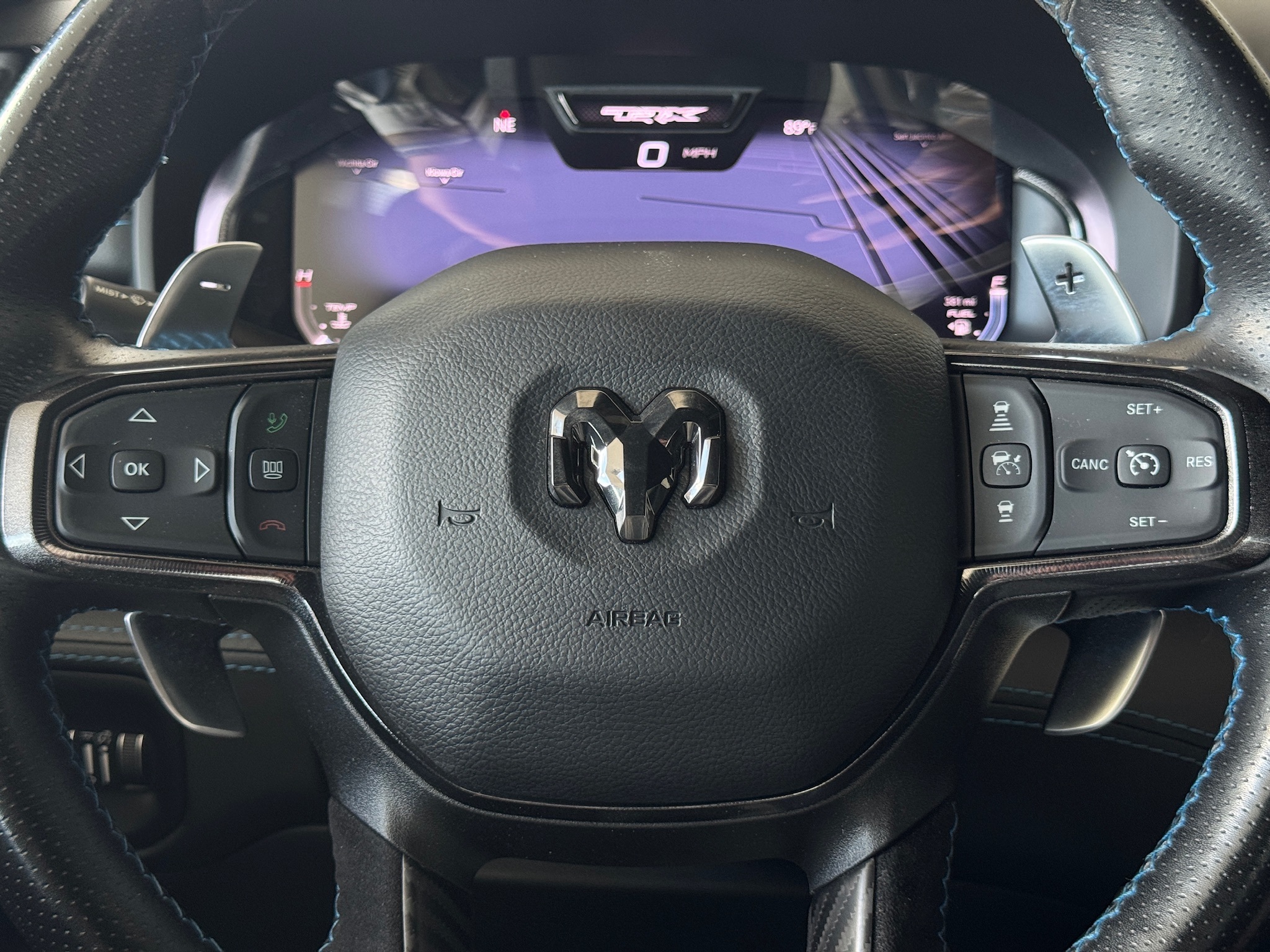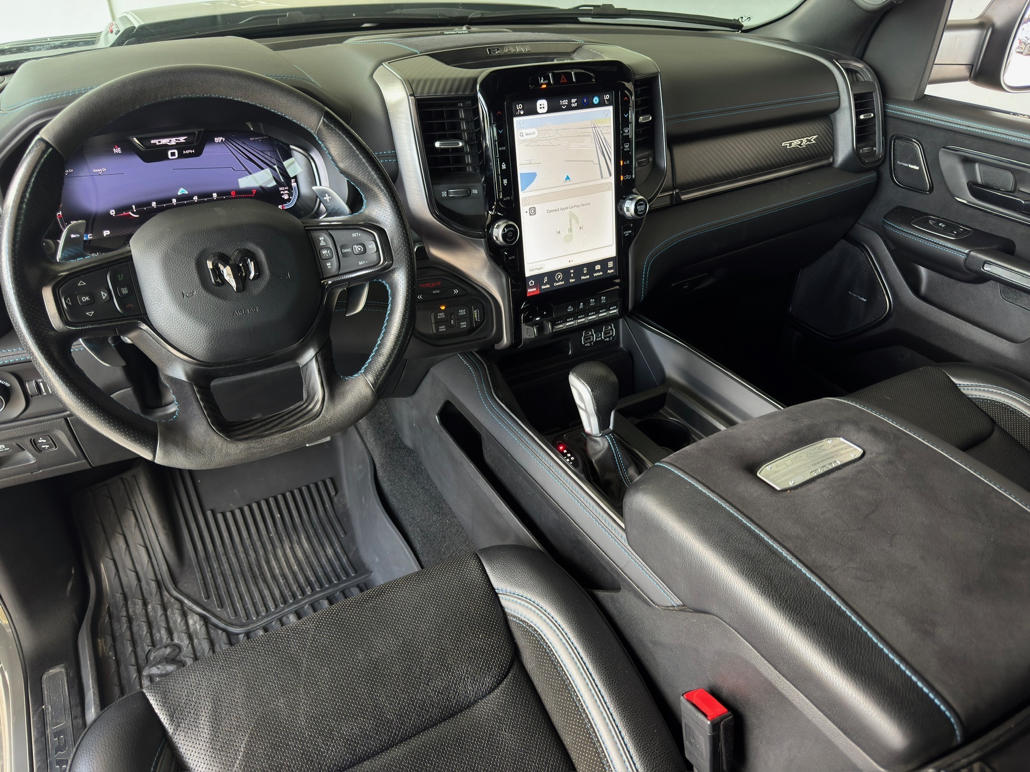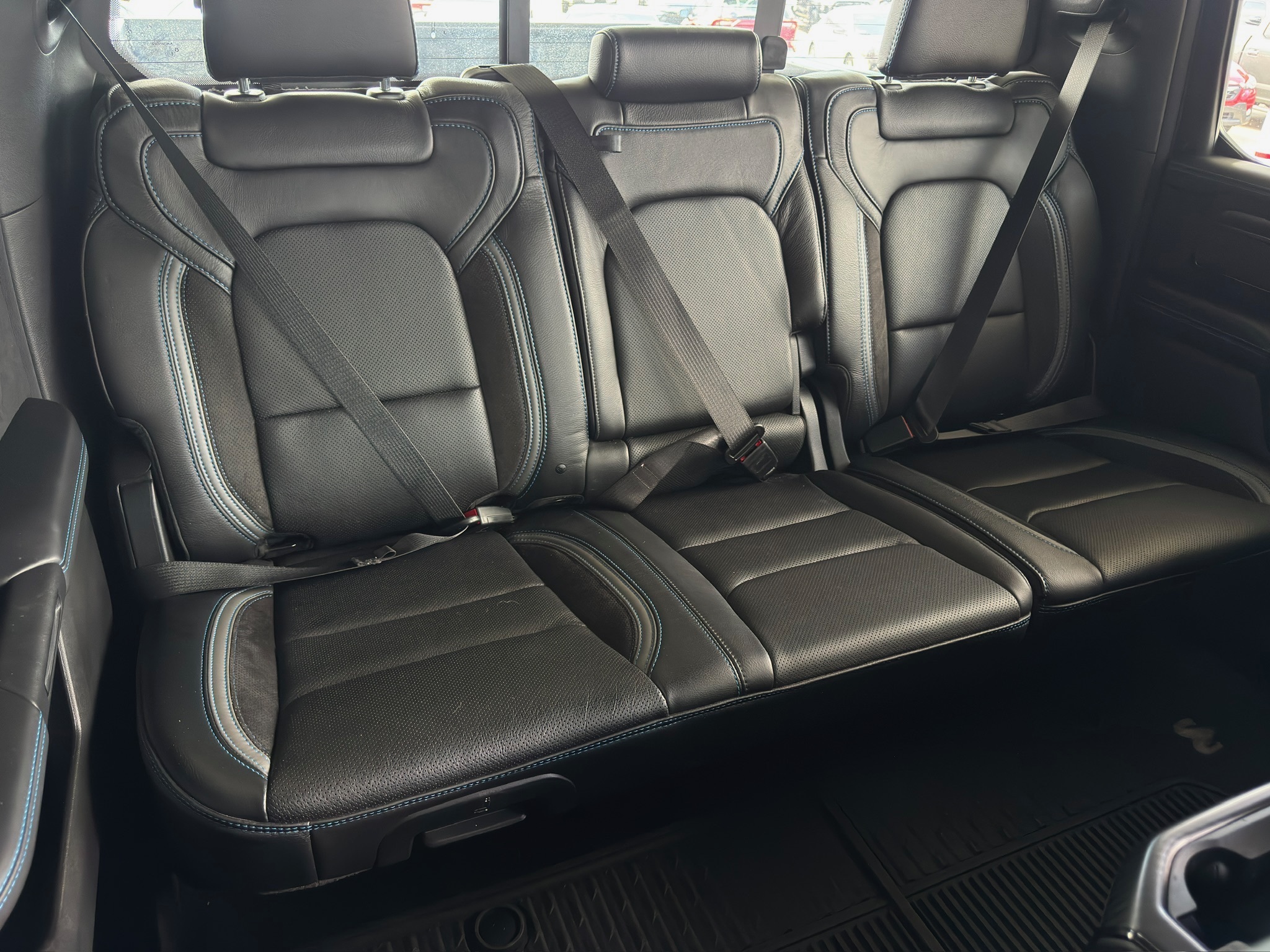 remium Upgraded Floor Console, harman/kardon 19 Speaker Premium Sound, Heads-Up Display, Heated Front Seats, Heated Second Row Seats, Heated Steering Wheel, IP LED Ambient Light Pipe, Leather Trimmed Bucket Seats, Leather/Suede Flat-Bottom Steering Wheel, LED CHMSL Lamp, Luxury Front Door Trim Panel, MOPAR Bright Pedal Kit, ParkSense Front/Rear Park Assist w/Stop, Pick-Up Box Lighting, Power 4-Way Driver Lumbar Adjust, Power 4-Way Passenger Lumbar Adjust, Power 8-Way Driver & Passenger Seats, Power Adjustable Pedals w/Memory, Premium Wrapped IP Bezel, Radio/Driver Seat/Mirrors/Pedals Memory, Rain Sensitive Windshield Wipers, Rear 60/40 Folding Seat, Rear 60/40 Folding Split Recline Seat, Rear Door Accent Lighting, Rear Underseat Compartment Storage, Rear Window Defroster, Remote Tailgate Release, Sun Visors w/Illuminated Vanity Mirrors, Surround View Camera System, Trailer Brake Control, TRX Level 2 Equipment Group, Universal Garage Door Opener, Ventilated Front Seats, Ventilated Rear Seats, Wireless Charging Pad.