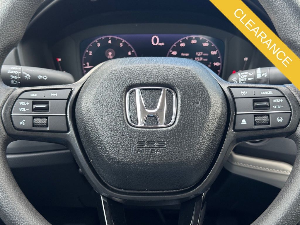 Gray Cloth, 4-Wheel Disc Brakes, 8 Speakers, ABS brakes, Adaptive Cruise Control: Adaptive Cruise Control (ACC) with Low-Speed Follow, Air Conditioning, Alloy wheels, AM/FM radio, Apple CarPlay/Android Auto, Auto High-beam Headlights, Automatic temperature control, Blind Spot Information (BSI) System warning, Brake assist, Bumpers: body-color, Compass, Delay-off headlights, Driver door bin, Driver vanity mirror, Dual front impact airbags, Dual front side impact airbags, Electronic Stability Control, Emergency communication system: HondaLink Assist, Exterior Parking Camera Rear, Fabric Seat Trim, Four wheel independent suspension, Front anti-roll bar, Front Bucket Seats, Front Center Armrest, Front dual zone A/C, Front reading lights, Fully automatic headlights, Heated door mirrors, Heated Front Bucket Seats, Heated front seats, Illuminated entry, Knee airbag, Lane departure: Lane Keeping Assist System (LKAS) active, Low tire pressure warning, Occupant sensing airbag, Outside temperature display, Overhead airbag, Overhead console, Panic alarm, Passenger door bin, Passenger vanity mirror, Power door mirrors, Power driver seat, Power moonroof, Power steering, Power windows, Radio data system, Radio: 180-Watt Audio System, Rear anti-roll bar, Rear reading lights, Rear seat center armrest, Rear side impact airbag, Rear window defroster, Remote keyless entry, Security system, Speed control, Speed-sensing steering, Speed-Sensitive Wipers, Split folding rear seat, Steering wheel mounted audio controls, Tachometer, Telescoping steering wheel, Tilt steering wheel, Traction control, Trip computer, Variably intermittent wipers, and Wheels: 17" x 7.5J Berlina Black.