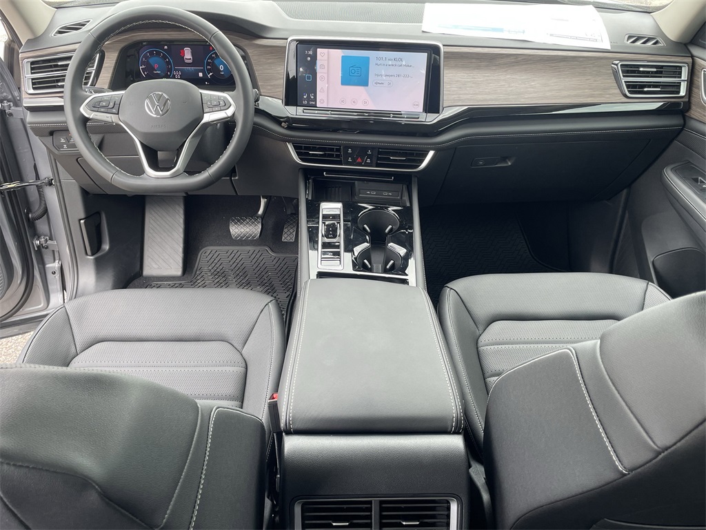 l, Brake assist, Bumpers: body-color, Compass, Delay-off headlights, Driver door bin, Driver vanity mirror, Dual front impact airbags, Dual front side impact airbags, Electronic Stability Control, Emergency communication system: VW Car-Net Safe & Secure 5-year, Exterior Parking Camera Rear, Four wheel independent suspension, four-wheel independent suspension, Front anti-roll bar, Front Bucket Seats, Front Center Armrest, Front dual zone A/C, Front fog lights, Front reading lights, Fully automatic headlights, Heads-Up Display, heated and Actively ventilated front bucket seats, Heated door mirrors, Heated front seats, Heated rear seats, Heated steering wheel, Illuminated entry, Low tire pressure warning, Memory seat, MIB3 discover media with navigation, Navigation System, Occupant sensing airbag, Outside temperature display, Overhead airbag, Overhead console, Panic alarm, Passenger door bin, Passenger vanity mirror, perforated vienna leather seating surfaces, Power door mirrors, Power driver seat, Power Liftgate, Power moonroof: Panoramic, Power passenger seat, Power steering, Power windows, Radio data system, Rain sensing wipers, Rear air conditioning, Rear anti-roll bar, Rear reading lights, Rear seat center armrest, Rear window defroster, Rear window wiper, Remote keyless entry, Security system, Speed control, Speed-sensing steering, Split folding rear seat, Spoiler, Steering wheel mounted audio controls, Tachometer, Telescoping steering wheel, Tilt steering wheel, Traction control, Trip computer, Turn signal indicator mirrors, Variably intermittent wipers, and Ventilated front seats. 2025 Volkswagen Atlas 2.0T SEL 4D Sport Utility Silver Price includes: $3500 - Retail Customer Bonus. Exp. 01/05/2026