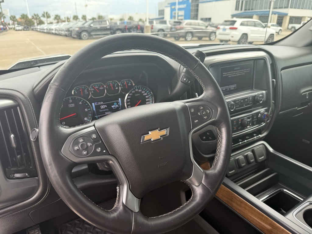 or Crew Cab and Double Cab models. On LTZ includes (RD2) 20 x 9 chrome wheels and (UQA) Bose Sound speakers and Texas Edition badging (N37) manual tilt and telescopic steering column included with (L83) 5.3L EcoTec3 V8 engine.), SUNROOF, POWER, ENHANCED DRIVER ALERT PACKAGE includes (UHX) Lane Keep Assist, (TQ5) IntelliBeam headlamps, (UHY) Low Speed Forward Automatic Braking, (UD5) Front and Rear Park Assist and (UEU) Forward Collision Alert, Safety Alert Seat, SEATS, FRONT FULL-FEATURE LEATHER-APPOINTED BUCKET WITH (KA1) HEATED SEAT CUSHIONS AND SEAT BACKS includes 10-way power driver and front passenger seat adjusters, including 2-way power lumbar control, 2-position driver memory, adjustable head restraints, (D07) floor console, storage pockets and (K4C) Wireless charging. LTZ PLUS PACKAGE includes (JF4) power adjustable pedals, (UQA) Bose premium audio system, (UD5) Front and Rear Park Assist and (UVD) heated leather steering wheel, AUDIO SYSTEM, CHEVROLET MYLINK RADIO WITH 8 DIAGONAL COLOR TOUCH-SCREEN, AM/FM STEREO with seek-and-scan and digital clock, includes Bluetooth® streaming audio for music and select phones; USB ports; auxiliary jack; voice-activated technology for radio and phone; and Shop with the ability to browse, select and install apps to your vehicle. Apps include Pandora, iHeartRadio, The Weather Channel and more. (STD), ENGINE, 5.3L ECOTEC3 V8 WITH ACTIVE FUEL MANAGEMENT, DIRECT INJECTION AND VARIABLE VALVE TIMING includes aluminum block construction (355 hp [265 kW] @ 5600 rpm, 383 lb-ft of torque [518 Nm] @ 4100 rpm; more than 300 lb-ft of torque from 2000 to 5600 rpm) (STD), TRANSMISSION, 6-SPEED AUTOMATIC, ELECTRONICALLY CONTROLLED with overdrive and tow/haul mode. Includes Cruise Grade Braking and Powertrain Grade Braking (STD). Chevrolet LTZ with SILVER ICE METALLIC exterior and JET BLACK / DARK ASH interior features a 8 Cylinder Engine with 355 HP at 5600 RPM*.