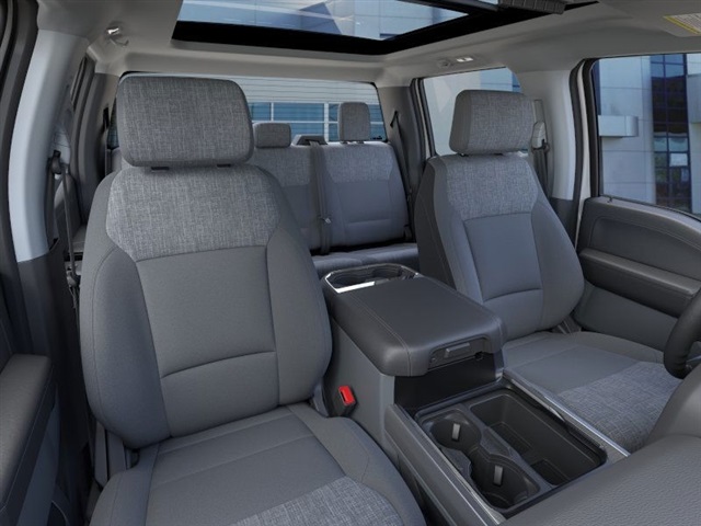 dio, AM/FM Stereo w/MP3 Player, Auto High-beam Headlights, Brake assist, Bumpers: chrome, Cloth 40/20/40 Split Bench Seat, Compass, Delay-off headlights, Driver door bin, Driver vanity mirror, Dual AGM 68 AH Battery, Dual front impact airbags, Dual front side impact airbags, Electronic Stability Control, Emergency communication system: SYNC 4 911 Assist, Engine Block Heater, Exterior Parking Camera Rear, Fixed Rear Window w/Privacy Glass & Defrost, Front anti-roll bar, Front Center Armrest w/Storage, Front fog lights, Front License Plate Bracket, Front reading lights, Fully automatic headlights, Heated door mirrors, Illuminated entry, Low tire pressure warning, Outside temperature display, Overhead airbag, Overhead console, Panic alarm, Passenger door bin, Passenger vanity mirror, Power door mirrors, Power driver seat, Power steering, Power windows, Privacy Glass, Rear reading lights, Rear step bumper, Remote keyless entry, Security system, Speed control, Split folding rear seat, Steering wheel mounted audio controls, SYNC 4, Tachometer, Telescoping steering wheel, Tilt steering wheel, Traction control, Trip computer, Turn signal indicator mirrors, Twin Panel Power Moonroof, Upfitter Switches (6), Variably intermittent wipers, Vehicle Integration System 2.0, and Wheels: 18" Sparkle Silver Painted Cast Aluminum. Recent Arrival!