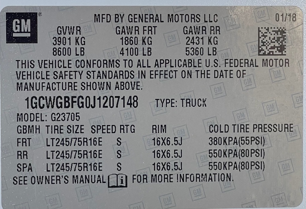 1GCWGBFG0J1207148Stock #